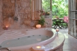 • Большой джакузи из декоративного камня, из которого открывается вид на фруктовый сад
